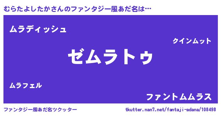 | 男性向けラノベタイトル風あだ名 | 『Re:むらたよしたかから始める異世界生活』 |
