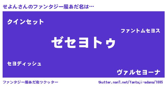 | 男性向けラノベタイトル風あだ名 | 『Re:せよんから始める異世界生活』 |
