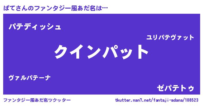 | ヒーロー風カッコイイあだ名 | 『天空の使者ぱて』『ネオパテ』 |
