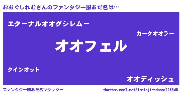| 男性向けラノベタイトル風あだ名 | 『オオグシレムアートオンライン』 |