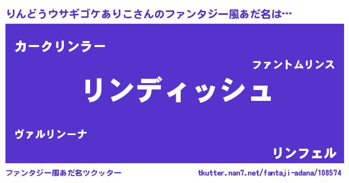 | 女子向けラノベタイトル風あだ名 | 『異世界で失敗しない100のりんどうウサギゴケありこ』 |