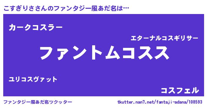 | ポケモン風あだ名 | 『コスゴンZ』『ヒコスギリサ』 |