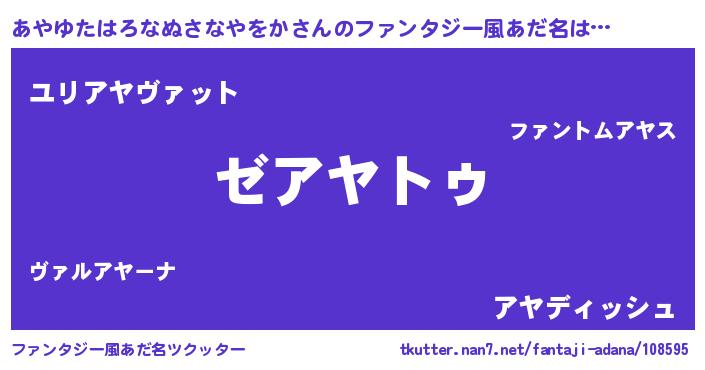 | 女子向けラノベタイトル風あだ名 | 『闇のあやゆたはろなぬさなやをか』 |