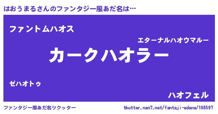 ポケモン風あだ名 | 『メロハッオ』『ヒハオウマル』 |