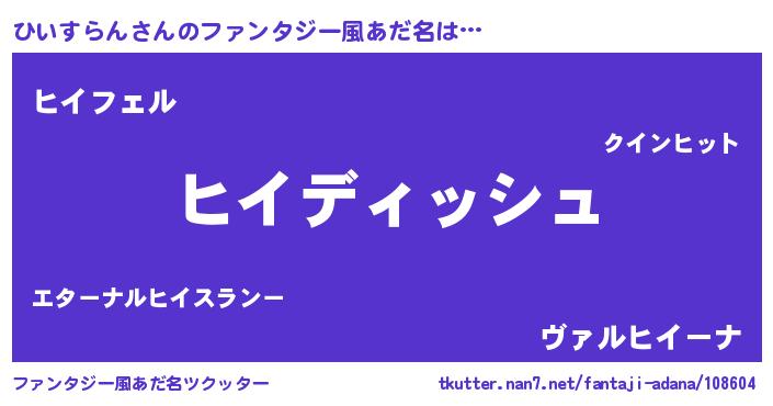 | 意味不明あだ名 | 『永久保存ひいすらん』 |