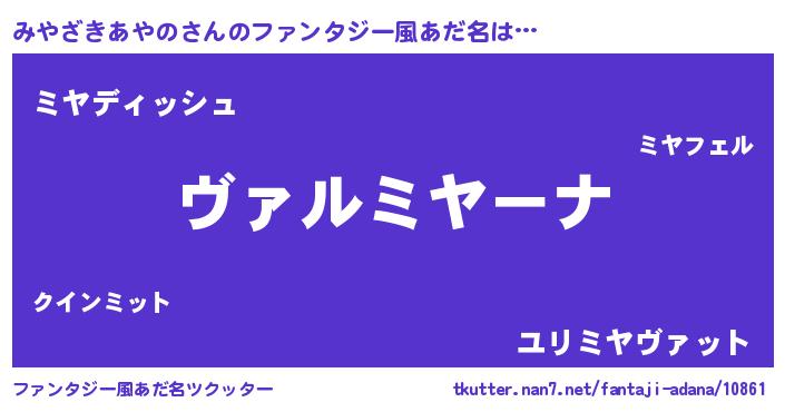 | ヒーロー風カッコイイあだ名 | 『仮面ミヤダー』『ネオミヤザキアヤノ』 |