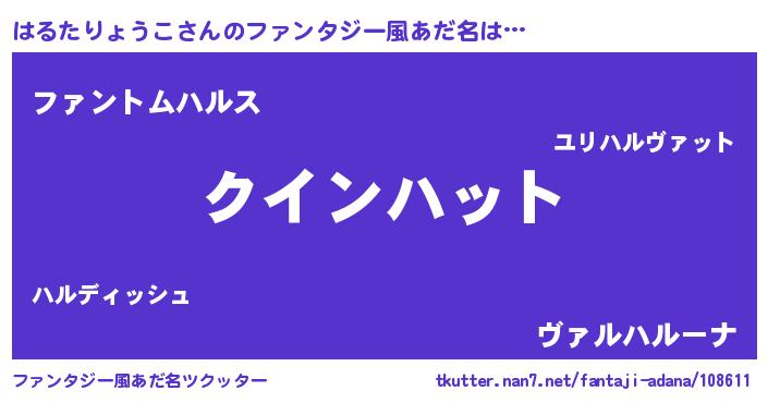 | ポケモン風あだ名 | 『ハックウザ』『ヒハルタリョウコ』 |