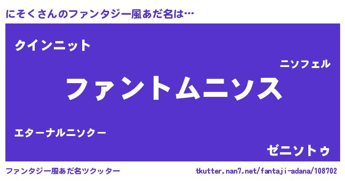 | ヒーロー風カッコイイあだ名 | 『黄金騎士ニソ』『慈愛の使者にそく』 |
