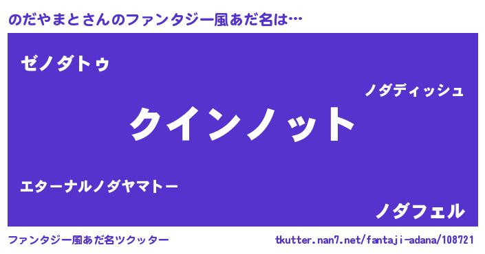 | 男性向けラノベタイトル風あだ名 | 『ノーゲーム・ノーノダヤマト』 |