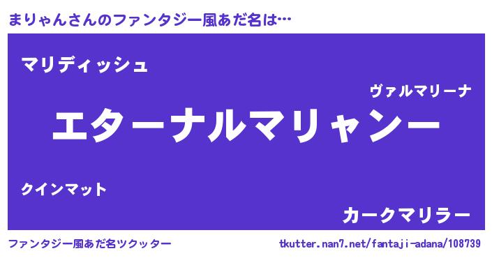 | 女子向けラノベタイトル風あだ名 | 『まりゃんの雑貨屋さん』 |
