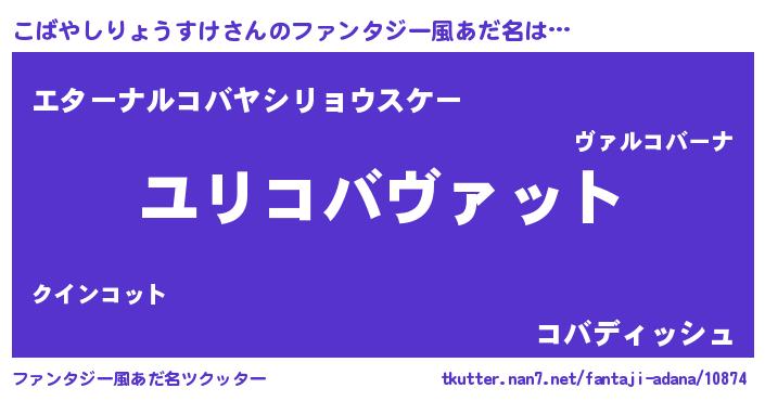 | 男性向けラノベタイトル風あだ名 | 『こばやしりょうすけ~年齢イコール彼女いない歴の魔法使い~』 |