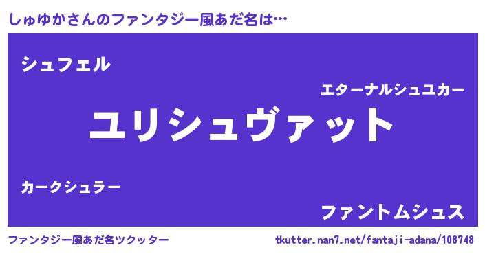 | 男性向けラノベタイトル風あだ名 | 『シュユカスレイヤー』『しゅゆかの憂鬱』 |