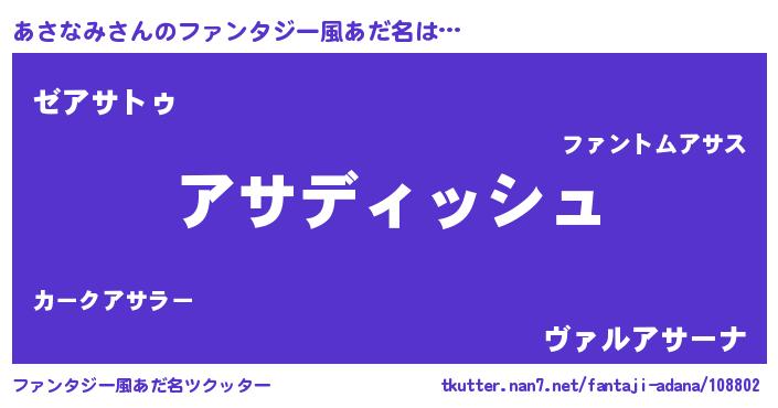 | 男性向けラノベタイトル風あだ名 | 『あさなみという概念が存在しない退屈な世界 』 |