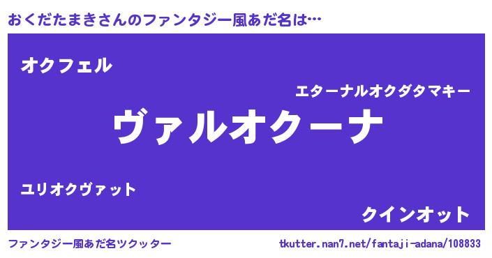 | 男性向けラノベタイトル風あだ名 | 『魔弾の王とおくだたまき』 |