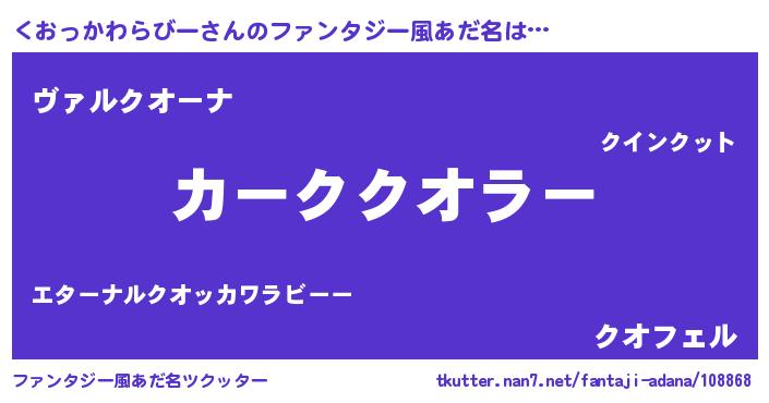 | 意味不明あだ名 | 『住所不定無職くおっかわらびー(74歳)』 |
