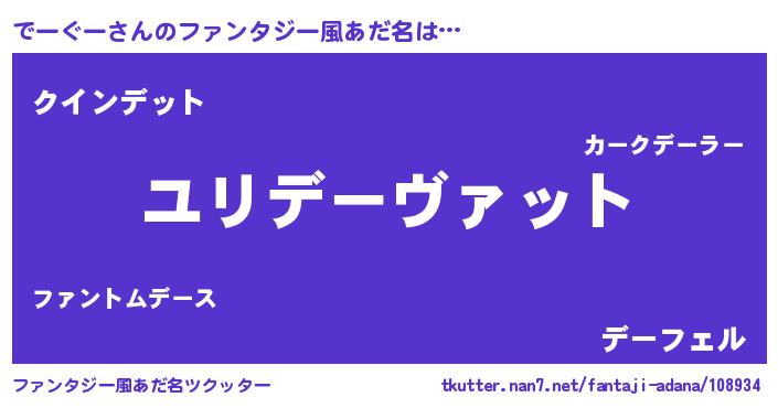 | ヒーロー風カッコイイあだ名 | 『慈愛の使者でーぐー』『天弓騎士デー』 |