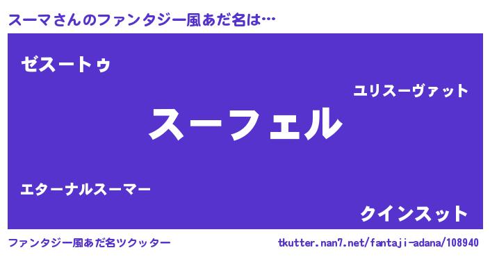 | 男性向けラノベタイトル風あだ名 | 『スーマの憂鬱』『はたらくスーマさま!』 |