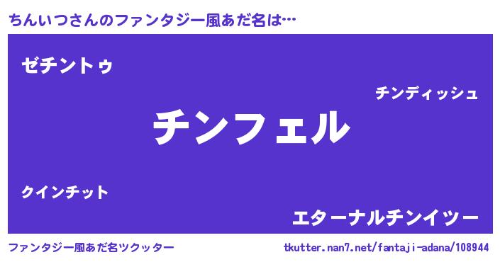 | 男性向けラノベタイトル風あだ名 | 『ちんいつの憂鬱』 |