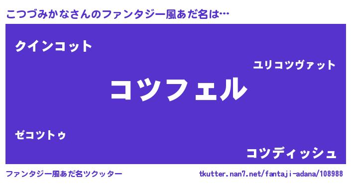 | ヘコむあだ名 | 『こつふぇ~』『こつづみかな(爆)』 |