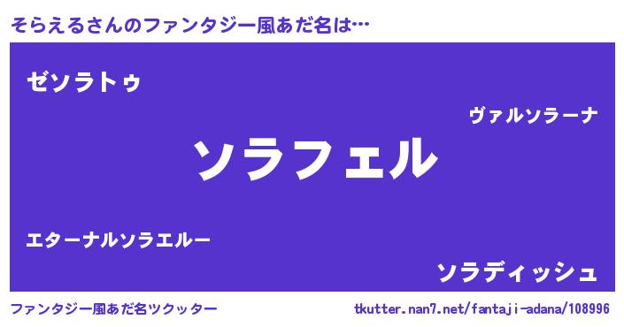 | ヒーロー風カッコイイあだ名 | 『スーパーソラエル』『究極戦士ソラエル』 |
