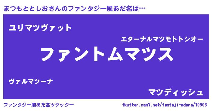 | 男性向けラノベタイトル風あだ名 | 『まつもととしおの嫁は女の子じゃないと思った?』 |
