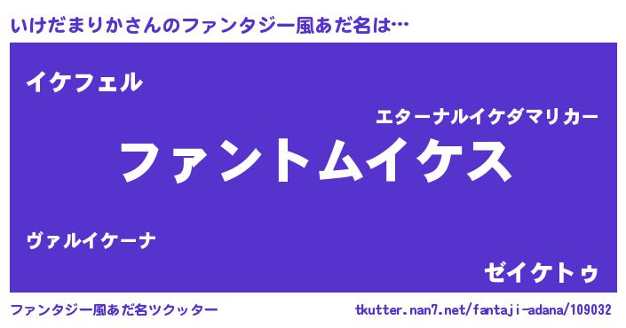 | ポケモン風あだ名 | 『ヒイケダマリカ』『イケチュウ』 |