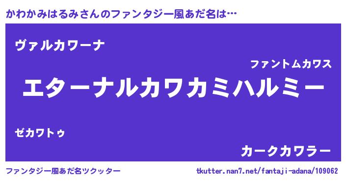 | 女子向けラノベタイトル風あだ名 | 『かわかみはるみの雑貨屋さん』 |