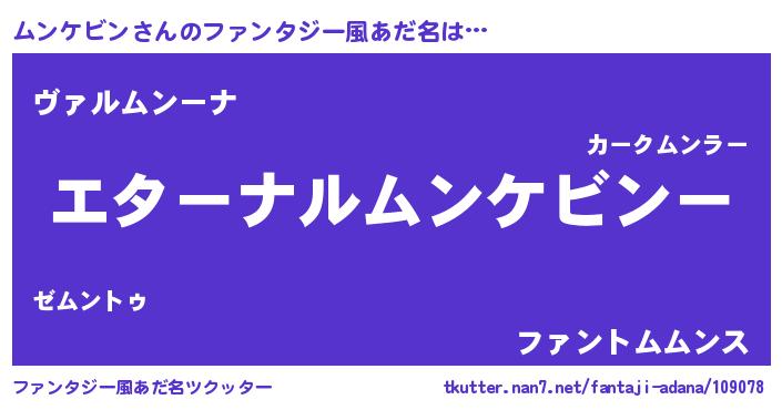 | 女子向けラノベタイトル風あだ名 | 『ムンケビンの雑貨屋さん』 |