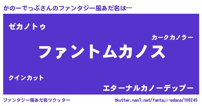 | 男性向けラノベタイトル風あだ名 | 『ダンジョンにかのーでっぷを求めるのは間違っているだろうか』 |