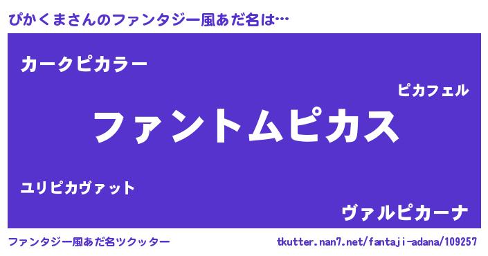 | ポケモン風あだ名 | 『ヒピカクマ』『ピカゴンZ』 |