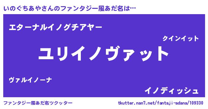 | 女子向けラノベタイトル風あだ名 | 『いのぐちあやの玉の輿計画!』 |