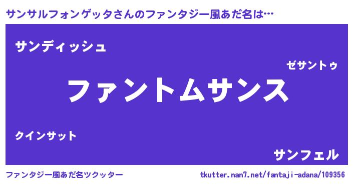 | 男性向けラノベタイトル風あだ名 | 『サンサルフォンゲッタの嫁は女の子じゃないと思った?』 |