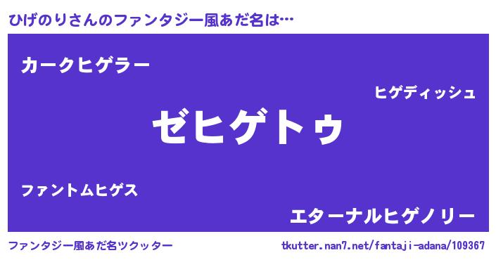 | 男性向けラノベタイトル風あだ名 | 『Re:ひげのりから始める異世界生活』 |