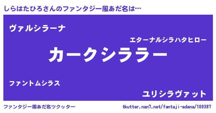 | 意味不明あだ名 | 『住所不定無職しらはたひろ(62歳)』 |
