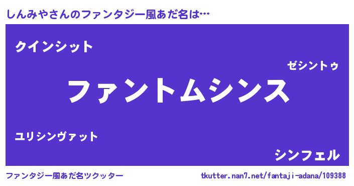 | 男性向けラノベタイトル風あだ名 | 『ダンジョンにしんみやを求めるのは間違っているだろうか』 |