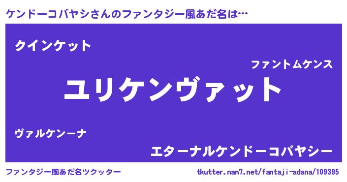 | 男性向けラノベタイトル風あだ名 | 『転生したらケンドーコバヤシだった件』 |