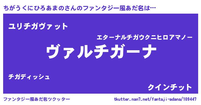 | 意味不明あだ名 | 『住所不定無職ちがうくにひろあまの(86歳)』 |
