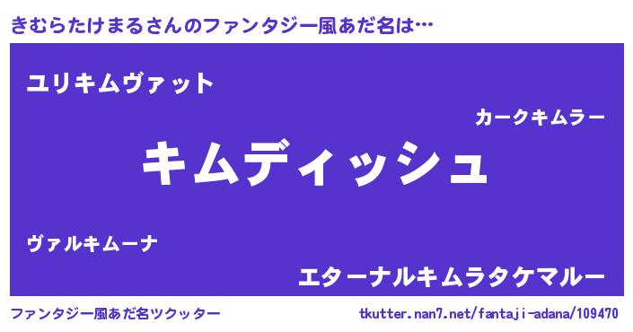 | ヘコむあだ名 | 『きむらたけまる(笑)』『なまこ酢』 |