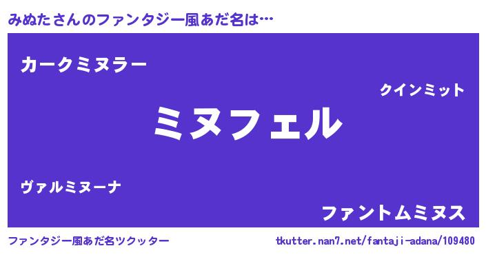 | ポケモン風あだ名 | 『ミヌゴンZ』『ミヌチュウ』 |