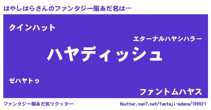 | 胡散臭い通販商品みたいなあだ名 | 『絶対に幸福をもたらす健康食品…その名も「はやしはら」』 |