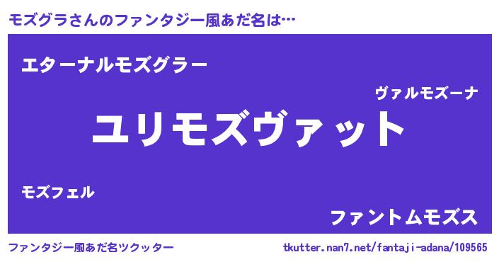 | 男性向けラノベタイトル風あだ名 | 『モズグラ~年齢イコール彼女いない歴の魔法使い~』 |