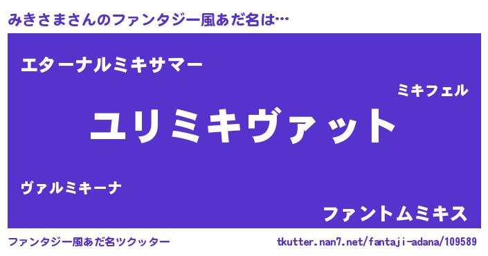 | 男性向けラノベタイトル風あだ名 | 『みきさま~年齢イコール彼女いない歴の魔法使い~』 |