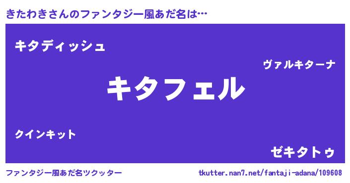 | 男性向けラノベタイトル風あだ名 | 『キタワキアートオンライン』 |