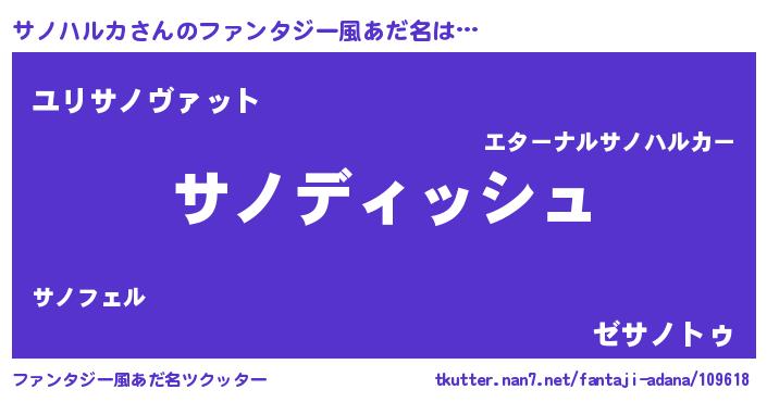 | ヒーロー風カッコイイあだ名 | 『ネオサノハルカ』『最強戦士サノハルカ』 |