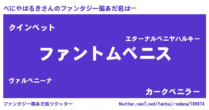 | 女子向けラノベタイトル風あだ名 | 『べにやはるき様がみてる』 |
