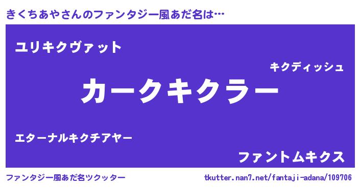 | ヒーロー風カッコイイあだ名 | 『天弓騎士キク』『ネオキクチアヤ』 |