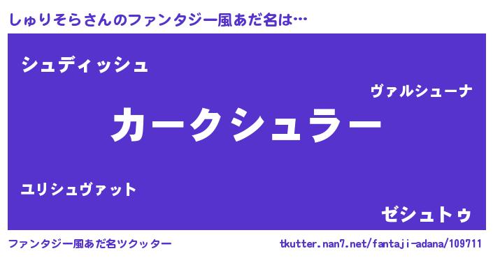 | 欧米人風あだ名 | 『しゅりそら・ステッグマイヤー』 |