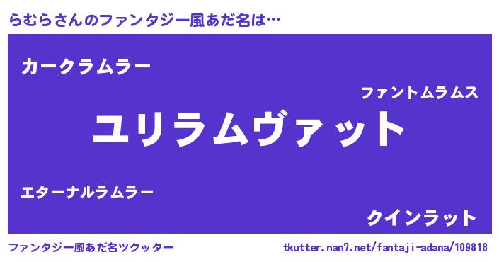 | 男性向けラノベタイトル風あだ名 | 『ラムラスレイヤー』『緋弾のラムラ』 |