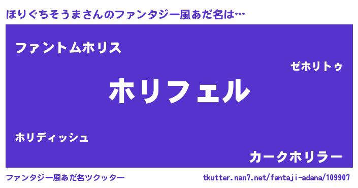 | 男性向けラノベタイトル風あだ名 | 『ほりぐちそうまの憂鬱』 |