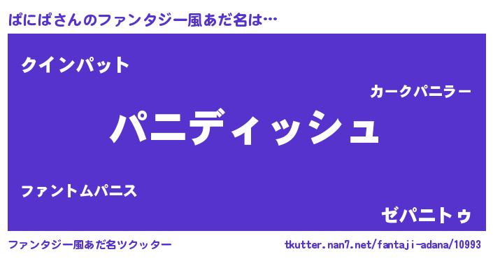 | 男性向けラノベタイトル風あだ名 | 『ぱにぱという概念が存在しない退屈な世界 』 |